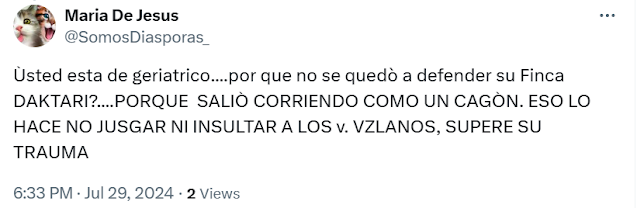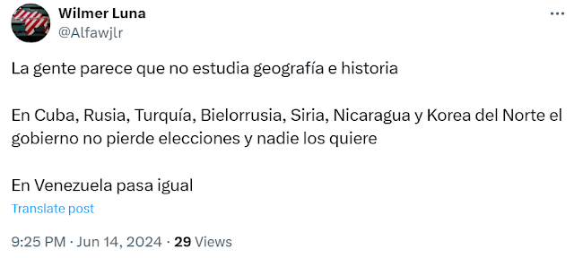 1. Lograron la ratificación del Sr. Maduro como venecubano vernáculo nacido en lo que una vez fue Venezuela, aunque todos podamos saber que nació en Colombia. Nadie, absolutamente nadie, gracias a la participación de la farsa de del 28J, podrá ahora alegar que el Sr. Maduro no es venecubano.